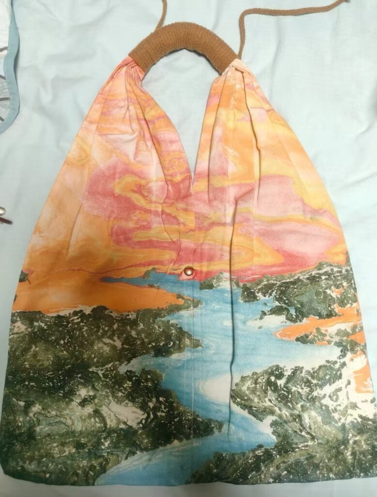 Art on the go, with extra-large capacity! Exclusive water-patterned waterproof canvas tote bag – your fashion statement!